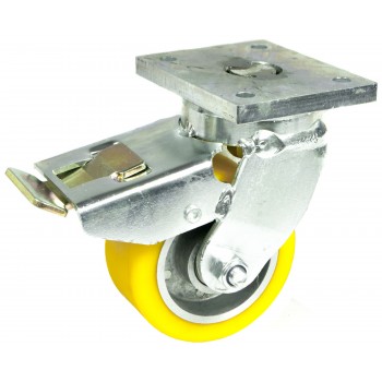 Zestaw kołowy do dużych obciążeń w obudowie skrętnej z hamulcem składają się z koła z aluminiowego korpusu z trwale połączonym bieżnikiem poliuretanowym oraz ze stabilnej...