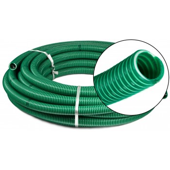 Wąż spiralny ssawno-tłoczny AGRO o średnicy 110mm, wykonany jest ze zmiękczonego PVC w kolorze zielonym zbrojony białą spiralą z twardego PVC.