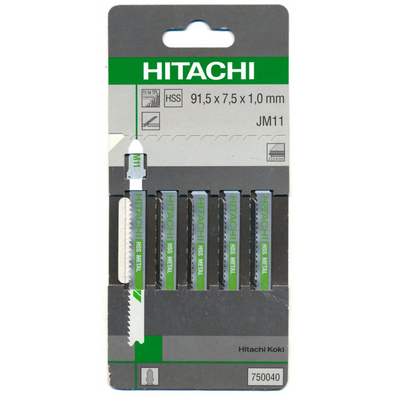 Opakowanie 5 brzeszczotów HITACHI JM11 (750040) przeznaczonych do pracy ze wszystkimi wyrzynarkami z mocowaniem teowym (typ T) brzeszczotu.