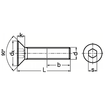 Śruba z łbem stożkowym, gwint prawy na całej długości trzpienia.