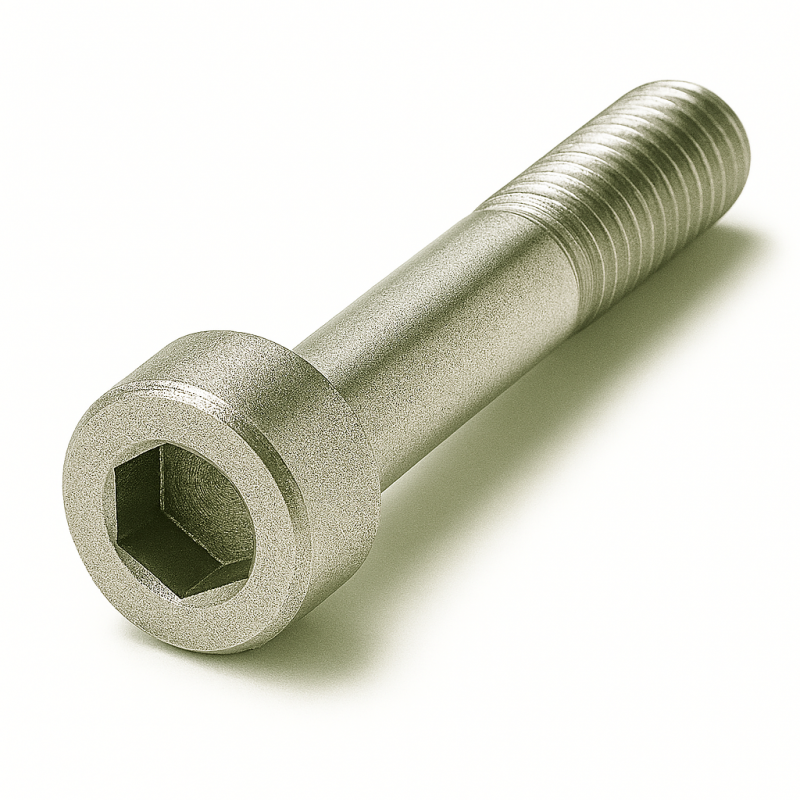 Śruba z łbem walcowym, gwint prawy na części długości trzpienia.