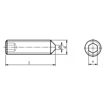 Śruba dociskowa bez łba z gwintem na całej długości z gniazdem sześciokątnym i końcem stożkowym DIN 914.