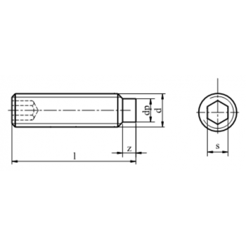 Śruba dociskowa bez łba z gwintem na całej długości z gniazdem sześciokątnym i czopem walcowym DIN 915.