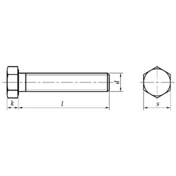 Śruba z łbem sześciokątnym, gwint prawy drobnozwojny na całej długości trzpienia.