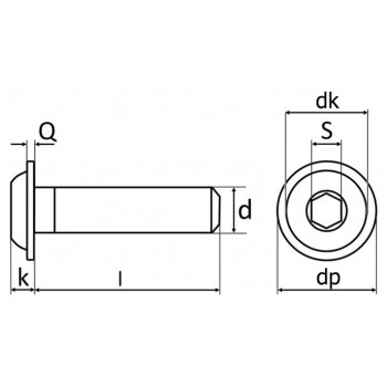 Śruba z łbem wypukłym podkładkowym, z gniazdem sześciokątnym, z gwintem na całej długości trzpienia ISO 7380-2. Cena za 100 sztuk.