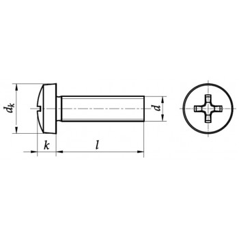 Wkręt do metalu z łbem walcowym wypukłym z wgłębieniem krzyżowym, z gwintem na całej długości trzpienia DIN 7985, mosiądz. Cena za 100 sztuk.