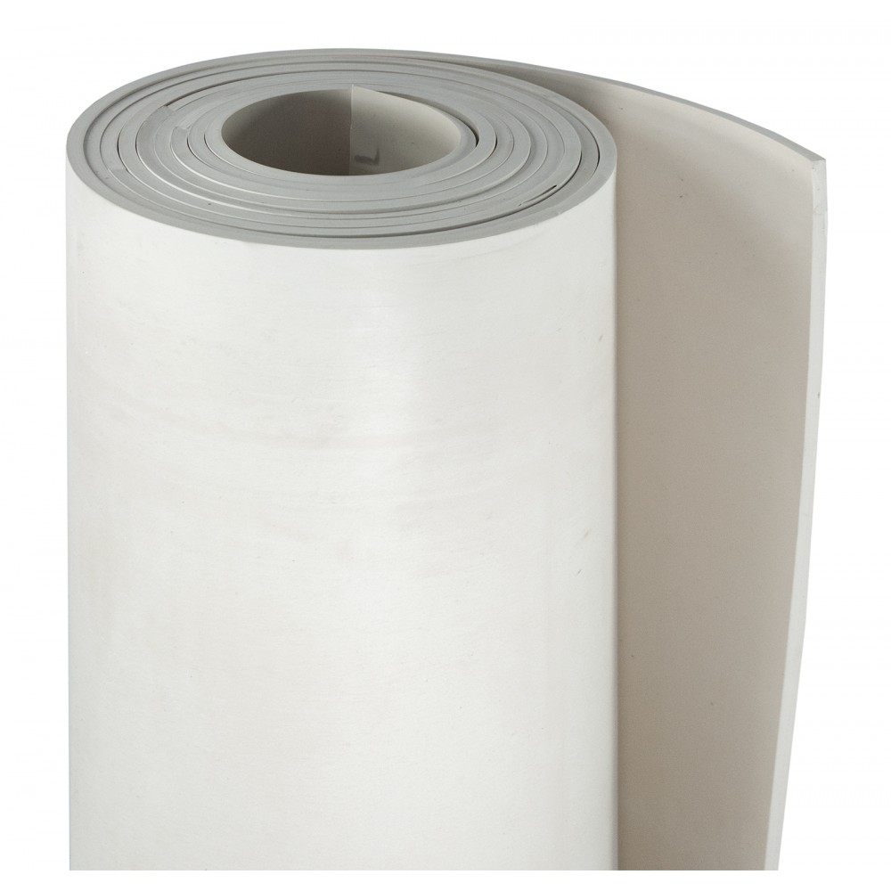 Biała płyta gumowa wykonana na bazie wysokiej jakości kauczuku SBR, pełna zgodność z rygorystycznymi normami amerykańskiej Agencji Żywności i Leków (FDA).