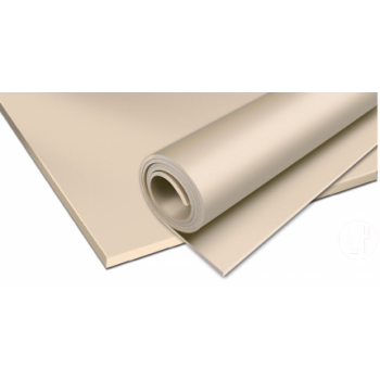 Płyta gumowa (spożywcza) na bazie kauczuku SBR (kauczuk butadienowo-styronowy) oraz NR (kauczuk naturalny). Barwa płyty beżowo-popielata.