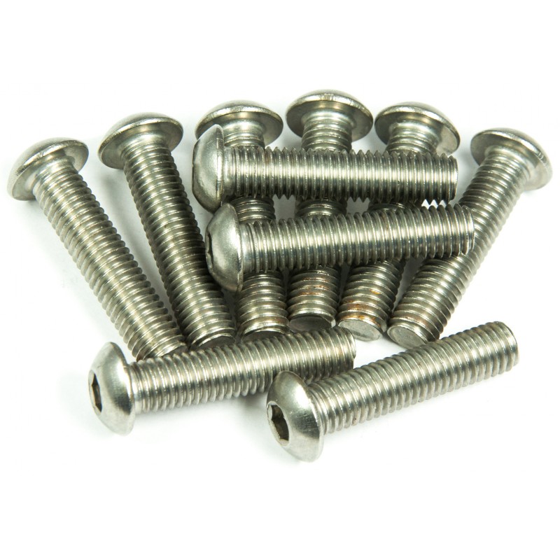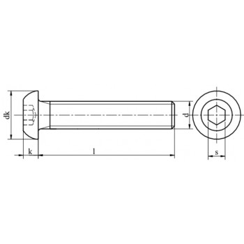 Śruba z łbem wypukłym z gniazdem sześciokątnym, z gwintem na całej długości trzpienia, według ISO 7380-1. Cena za 100 sztuk śrub.