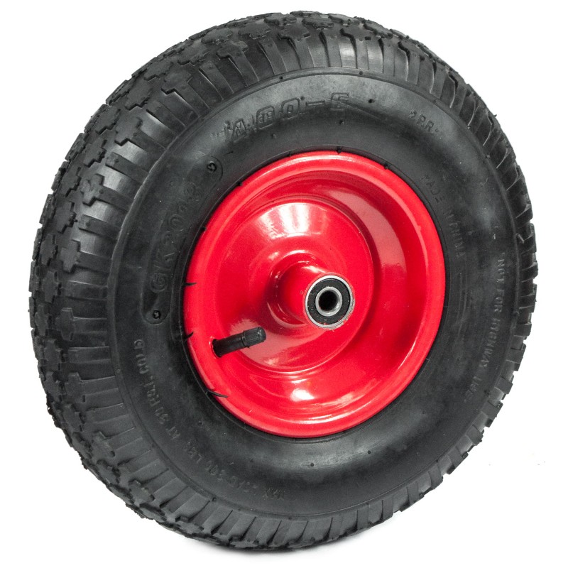 Koło pneumatyczne składa się ze stalowej, tłoczonej i zawijanej tarczy w kolorze zielonym wyposażonej w łożysko kulkowe 6201 RS oraz bieżnikowanej opony z dętką z wentylem samochodowym.
