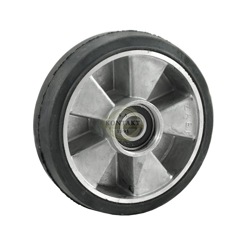 Zestaw kołowy aluminiowo-gumowy składa się z aluminiowego korpusu trwale połączonego z oponą z pełnej gumy.