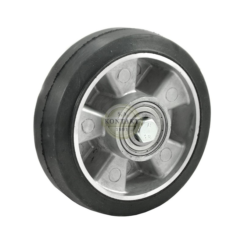 Zestaw kołowy aluminiowo-gumowy składa się z aluminiowego korpusu trwale połączonego z oponą z pełnej gumy.