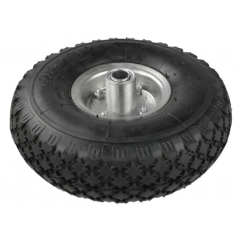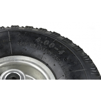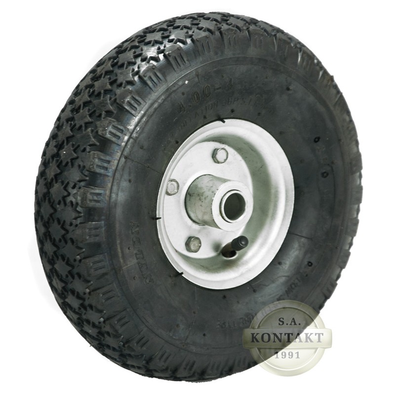 Koło pneumatyczne składa się ze stalowej, tłoczonej i zawijanej tarczy w kolorze szarym wyposażonej w łożysko oraz bieżnikowanej opony z dętką z wentylem samochodowym.