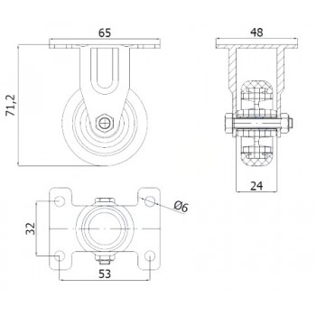 Zestaw kołowy składa się z koła tworzywowo-gumowego oraz stabilnej stalowej obudowy tłoczonej.