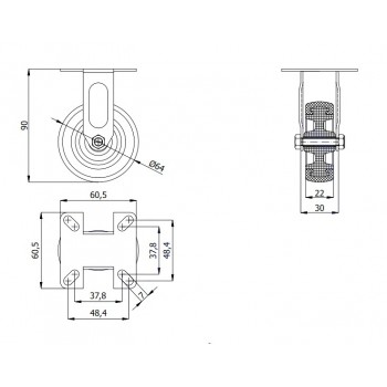 Koło metalowo – gumowe w obudowie z otworem wykonanej ze stalowych elementów tłoczonych. Całość pokryta jest warstwą ocynku, który zabezpiecza przed korozją.