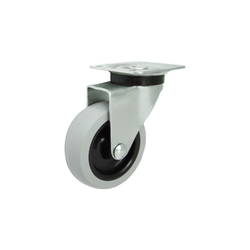 Zestaw kołowy składa się z koła tworzywowo-gumowego oraz ze stabilnej stalowej obudowy tłoczonej z płytką mocującą.