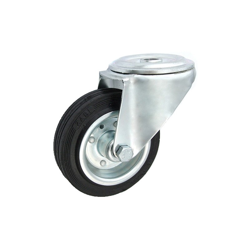 Koło metalowo – gumowe w obudowie z otworem wykonanej ze stalowych elementów tłoczonych. Całość pokryta jest warstwą ocynku, który zabezpiecza przed korozją. Obudowa dzięki zabezpieczeniu długotrwałym smarem nie wymaga konserwacji. Dodatkowo w tym modelu zastosowano łożyskowanie podwójnym rzędem kulek w głowicy skrętnej. Takie połączenie tworzy mały luz w głowicy obrotowej obudowy co przyczynia się trwałości połączenia oraz zwiększenia żywotności. Uszczelniacz tworzywowy zabezpiecza kulki łożyska.