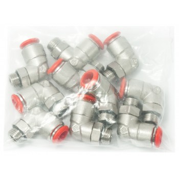 Łącznik wtykowy kątowy inaczej złączka kątowa z gwintem zewnętrznym na wąż to element umożliwiający sprawne połączenie przewodów poliuretanowych, poliamidowych oraz polietylenowych z innymi elementami układu pneumatycznego.