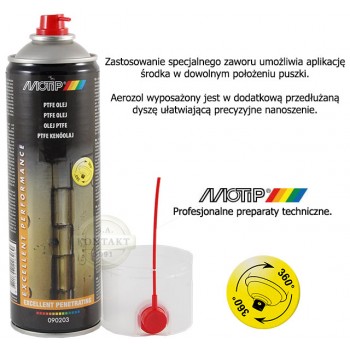 Preparat MOTIP 090203 jest olejem teflonowym o doskonałych właściwościach penetrujących. Nadaje się do smarowania części mechanicznych z metalu lub tworzywa sztucznego.
