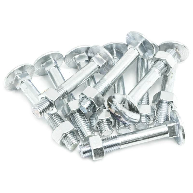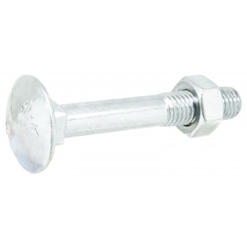 Śruba z łbem grzybkowym z podsadzeniem według DIN 603, gwint na części długości trzpienia i nakrętka sześciokątna według DIN 555. Śruba i nakrętka wykonane są ze stali ocynkowanej galwanicznie.