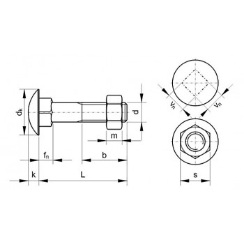 Śruba z łbem grzybkowym z podsadzeniem DIN 603 z nakrętką sześciokątną DIN 555.