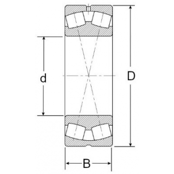 Łożysko baryłkowe poprzeczne dwurzędowe jest nierozłącznym łożyskiem wahliwym, przeznaczonym do dużych i złożonych obciążeń. Cechą charakterystyczną łożyska jest rowek smarowy i trzy otwory smarowe na pierścieniu zewnętrznym oznaczane symbolem W33. Wymiary łożyska 55x100x25mm.