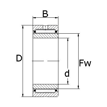 Łożysko igiełkowe masywne typ NA składa się ze złożenia igiełkowego oraz pierścieni zewnętrznego i wewnętrznego.