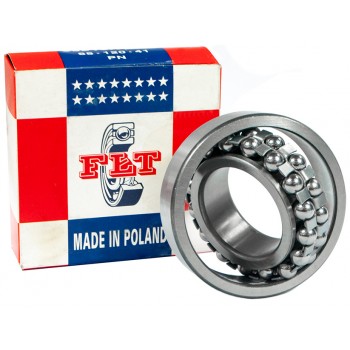 Łożysko kulkowe wahliwe FŁT 1306 K o wymiarach 30x72x19mm charakteryzuje się dwoma rzędami kulek i kulistą bieżnią pierścienia zewnętrznego, co pozwala na swobodne ustawianie się wzajemne pierścieni.