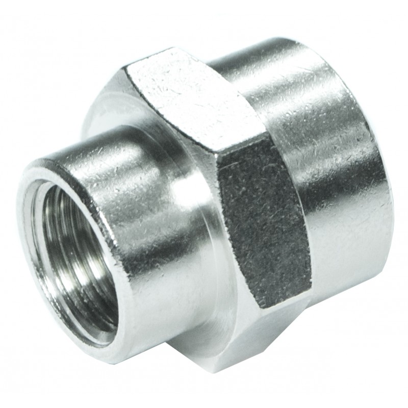 Mufa redukcyjna wykonana jest z mosiądzu niklowanego i charakteryzuje się wysoką odpornością na działanie szkodliwych czynników takich jak wilgoć (wysoka odporność na korozję), oleje czy wysoka temperatura. Mufa redukcyjna posiada dokładnie wykończone połączenia gwintowane, dzięki czemu na długo zachowuje swą doskonałą szczelność. Dodatkowo do uszczelnienia połączenia gwintowanego polecamy: taśmy teflonowe lub uszczelniacze do gwintów marki Loctite, które posiadamy w naszym asortymencie. W ofercie posiadamy szeroki asortyment elementów złącznych gwintowanych o różnych kombinacjach gwintów.
