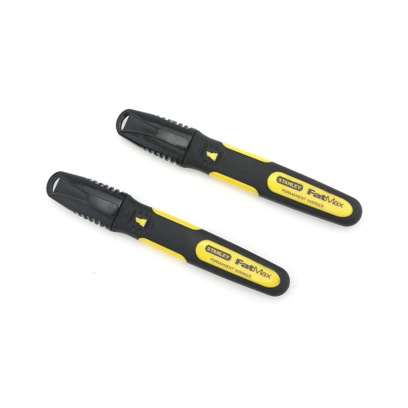 Zestaw 2 sztuk markerów permanentnych STANLEY FATMAX w kolorze czarnym z końcówką ściętą.