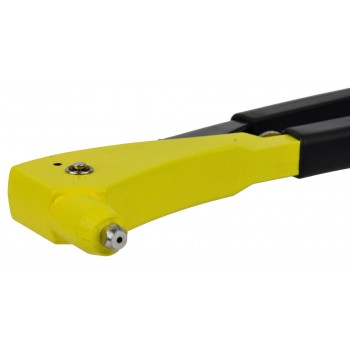 Nitownica ręczna 10" typ japoński marki Geko przeznaczona jest do wykonywania łączenia dwóch materiałów ze sobą na przykład płaskowników stalowych, aluminiowych, skóry, PCV, blach i innych materiałów za pomocą nitów zrywalnych aluminiowych jak i miedzianych do średnicy 4,8 mm.