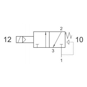Zawór pneumatyczny sterowany jednostronnie elektrycznie jedną cewką – powrót sprężyną.
