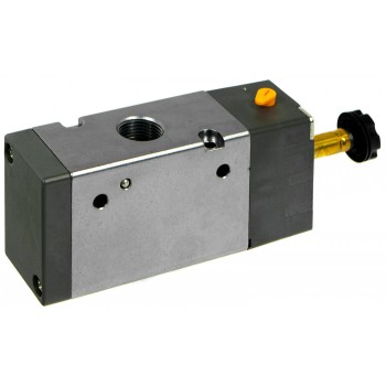 Zawór pneumatyczny sterowany jednostronnie elektrycznie jedną cewką – powrót sprężyną.