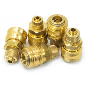 Szybkozłącze wykonane jest z mosiądzu MS 58 z elementami ze stali nierdzewnej, uszczelnieniem NBR i charakteryzuje się dużą odpornością na działanie szkodliwych czynników takich jak wilgoć (odporność na korozję), oleje czy wysoka temperatura. Gniazdo szybkozłącza zbudowane jest z korpusu, zaworu odcinającego oraz elementów ruchomych, czyli sprężyny, pierścienia zatrzasku oraz kulek.