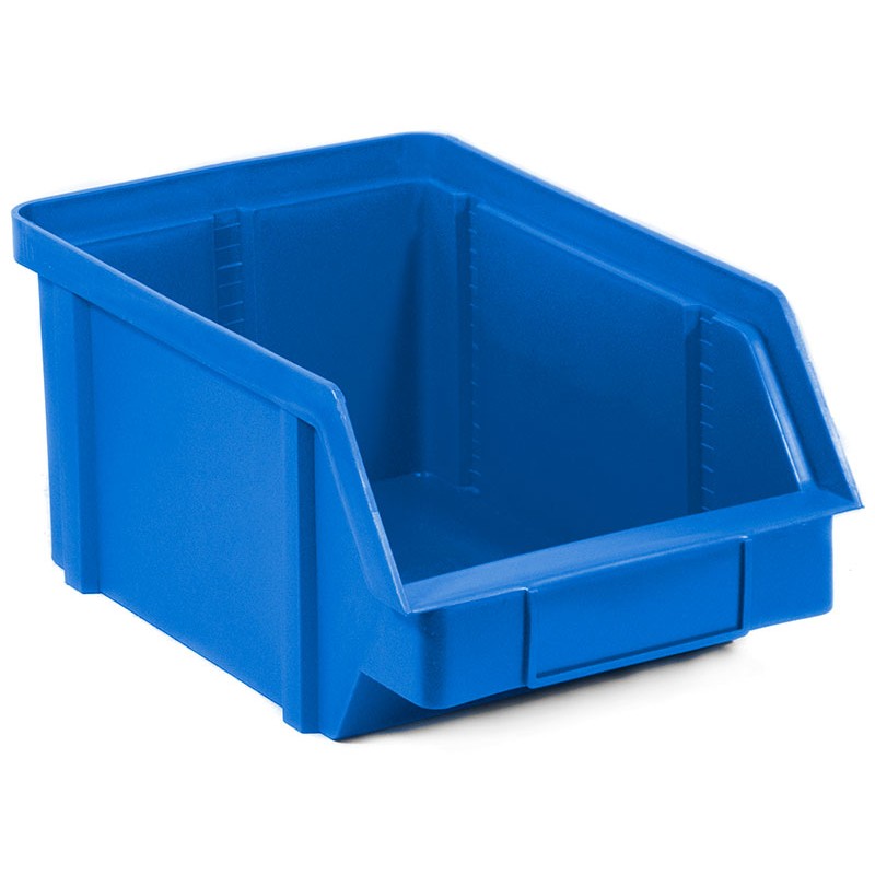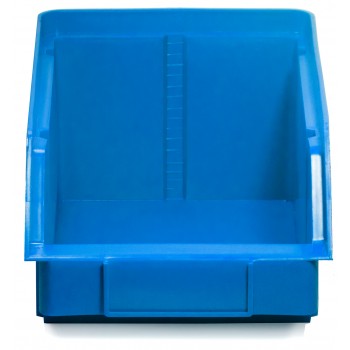 - Kształt: ma trapezoidalny kształt, co pozwala na łatwe układanie w stosy (sztaplowanie), a także na montaż w regałach. Można zaoszczędzić dużo miejsca w magazynie.