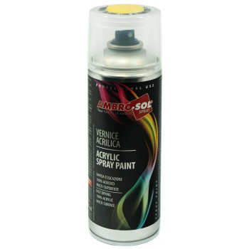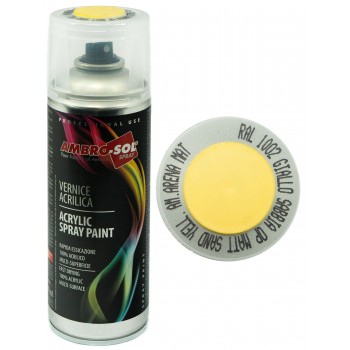 Szybkoschnący lakier akrylowy w aerozolu marki Ambro-sol w kolorze piaskowym (paleta barw RAL 1002) z matowym wykończeniem.