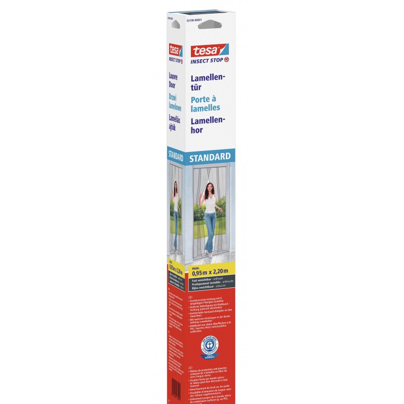 Lamele do drzwi marki TESA model 55198 to wyjątkowa moskitiera, która składa się z czterech zachodzących na siebie pasków lamelowych z trwałego włókna szklanego w kolorze antracytu. Paski lamelowe umożliwiają swobodne korzystanie z drzwi, a jednocześnie stanowią skuteczne zabezpieczenie przed robakami, pająkami, muchami, komarami czy innymi irytującymi insektami.