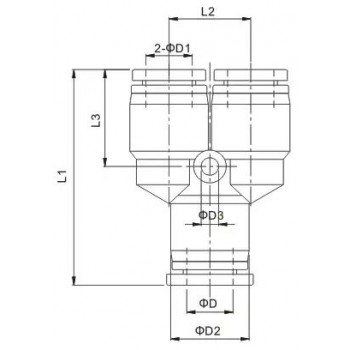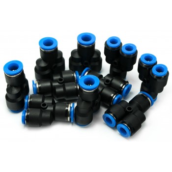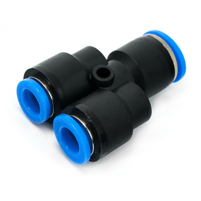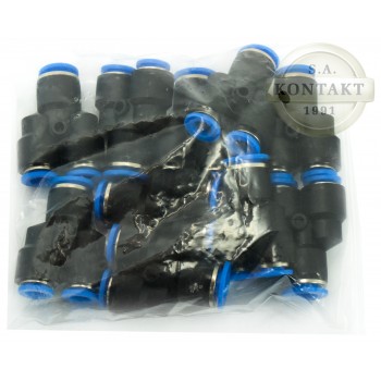 Rozdzielacz wtykowy czyli inaczej złączka wtykowa potrójna pod wąż to element do połączeń przewodów poliuretanowych, poliamidowych oraz polietylenowych w układach pneumatycznych.