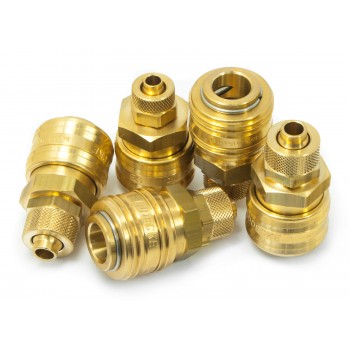 Szybkozłącze wykonane jest z mosiądzu MS 58 z elementami ze stali nierdzewnej, uszczelnieniem NBR i charakteryzuje się dużą odpornością na działanie szkodliwych czynników takich jak wilgoć (odporność na korozję), oleje czy wysoka temperatura. Gniazdo szybkozłącza zbudowane jest z korpusu, zaworu odcinającego oraz elementów ruchomych, czyli sprężyny, pierścienia zatrzasku oraz kulek.