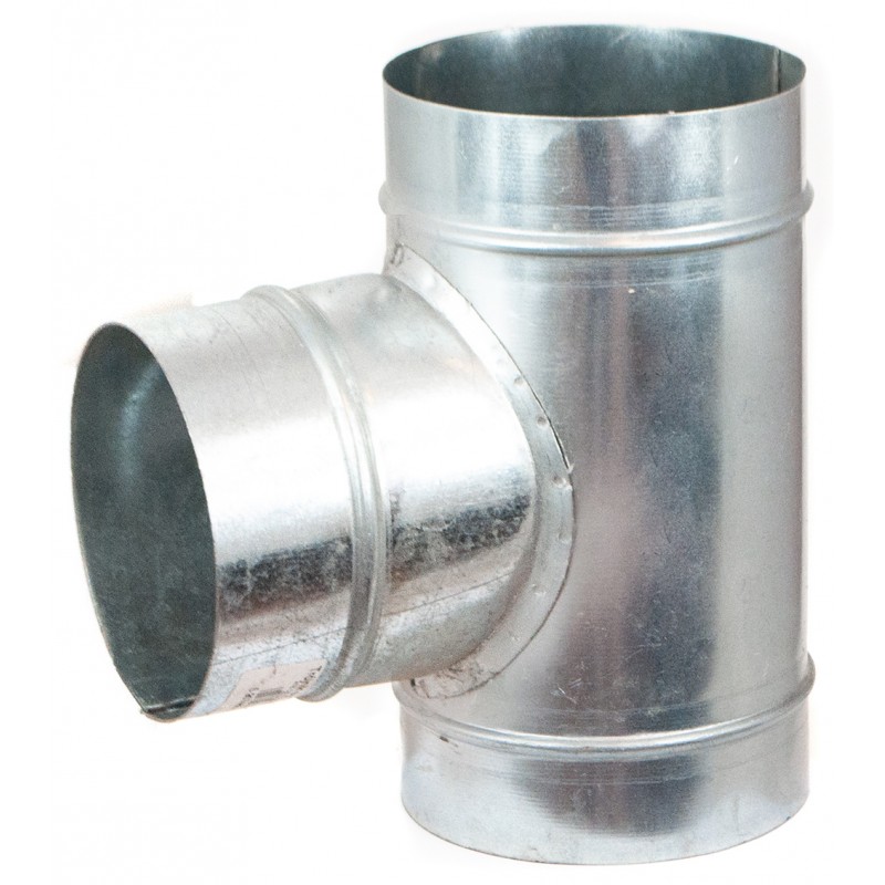 Trójnik przelotowy z odejściem pod katem 90 stopni o wymiarze takim jak główny kanał wentylacyjny.