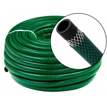 Wąż ogrodowy PVC 12,5mm (1/2") wykonany jest na bazie plastyfikowanego PVC, dodatkowo wzmocniony przędzą poliestrową. Cena dotyczy 50 metrów bieżących węża.