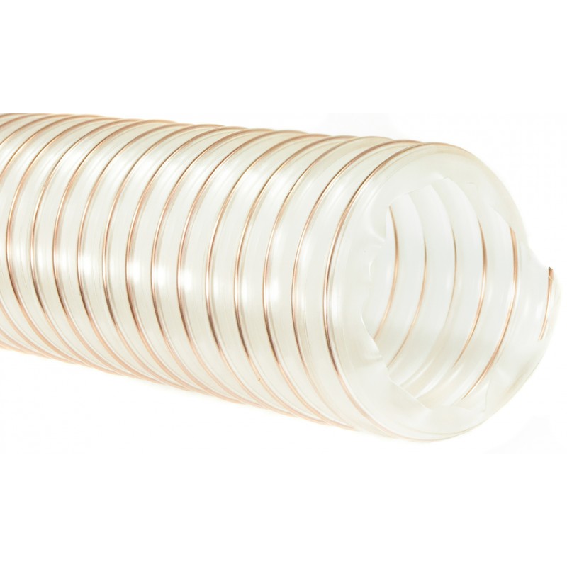 Wąż spiralny odciągowy antystatyczny 2PU-PUR przeznaczony jest do odprowadzania gazów, oparów różnych substancji chemicznych, olejów, benzyn, pyłów, dymów, trocin, materiałów sypkich czy też elementów o dużym współczynniku ścierania w strefach zagrożenia wybuchem. Cena dotyczy 1 metra bieżącego węża.