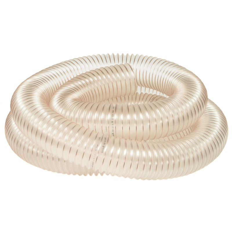 Wąż spiralny odciągowy antystatyczny 2PU-PUR przeznaczony jest do odprowadzania gazów, oparów różnych substancji chemicznych, olejów, benzyn, pyłów, dymów, trocin, materiałów sypkich czy też elementów o dużym współczynniku ścierania w strefach zagrożenia wybuchem.