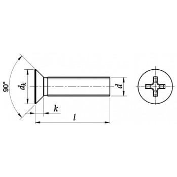 Wkręt do metalu z łbem stożkowym z wgłębieniem krzyżowym Philips, gwintem na całej długości trzpienia, DIN 965. Cena za 100 sztuk.