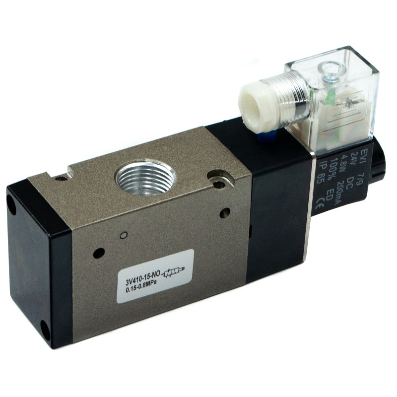 Elektrozawór pneumatyczny 3V410-15 NO jest sterowany jednostronnie elektrycznie jedną cewką 24V DC.