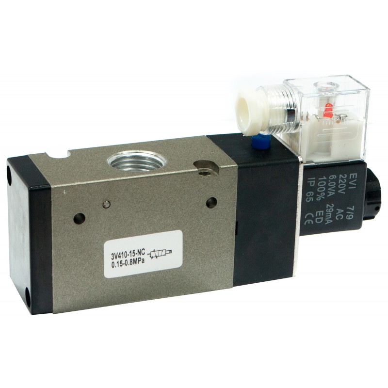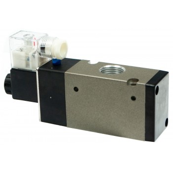 Elektrozawór pneumatyczny 3/2, gwint 1/2", sterowany elektrycznie, NC, cewka 220V AC, idealny do sterowania siłownikami i układami pneumatycznymi